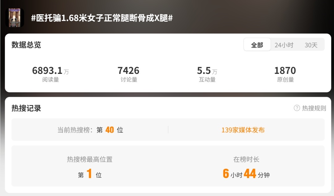 而这已不是“断骨增高术”第一次出来骗人了。多位做过“断骨增高术”的人,有的双腿疼痛无力,做好了以后坐轮椅的打算;有人站了出来,在各个平台上宣传健康人做该手术的危害,让更多人不要受骗;还有人一直在与医院打官司。